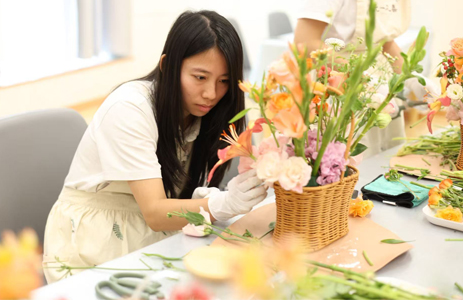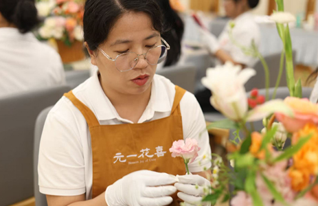 在自由創作環節,組裝過萬千機械臂的雙手展現出新的天賦。數控工程師王浩將紫羅蘭與滿天星構建出富有節奏感的立體結構,質檢員周莉用淡粉繡球打造出漸變層次的花環。當各組成品擺上展示臺時,創意火花如車間頂棚的日光燈般透亮:有人用銅線拗出工業風架構,有人以齒輪零件點綴永生花禮盒。