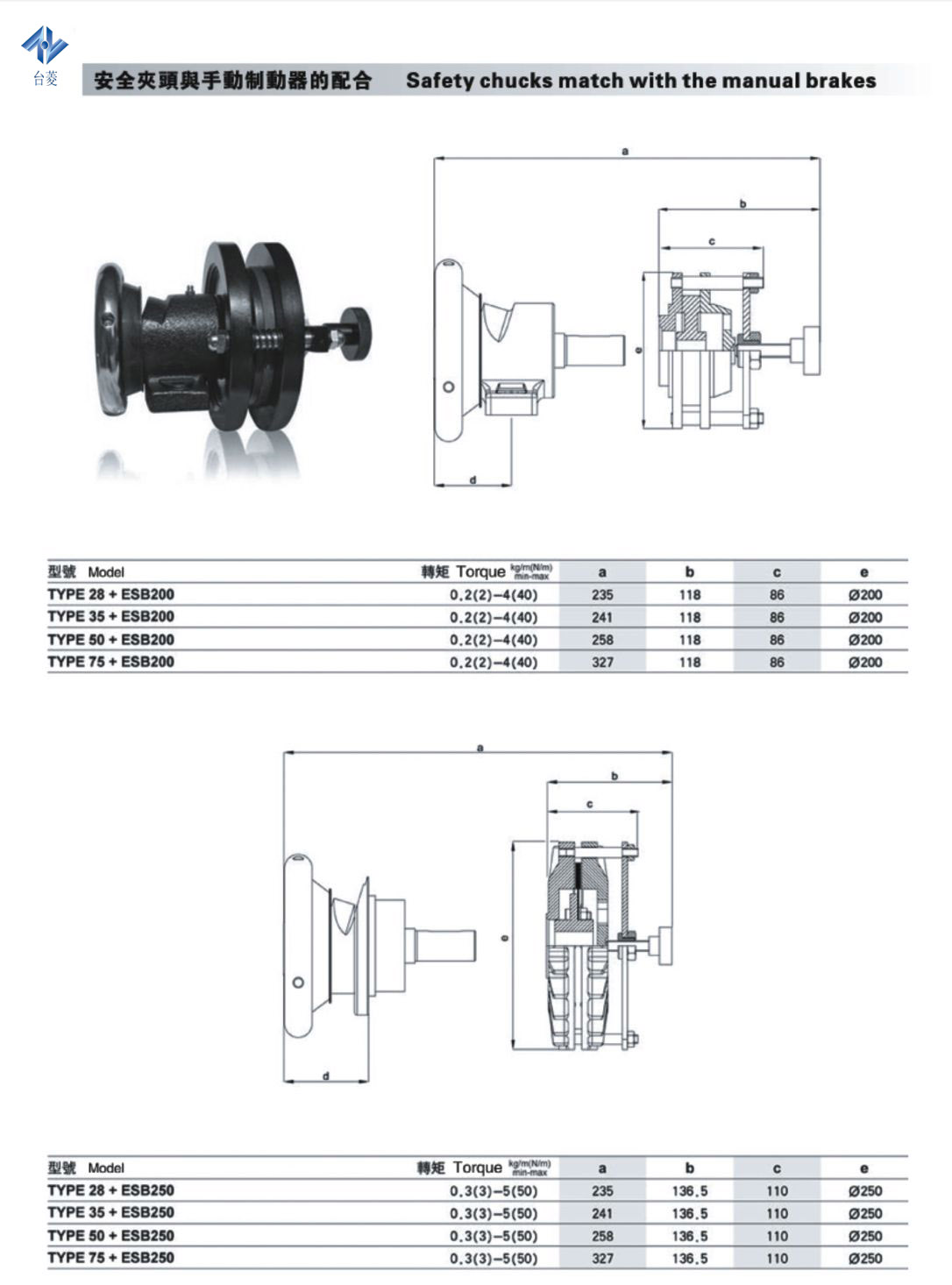 安全夾頭,標準型安全夾頭簡單實用且容易安裝的設計,為聯結傳動及脫離之類頻繁動作提供快速、安全、確實及簡易的聯軸及脫離運作。而且,安全夾頭傳動部份的規格尺寸可依據不同的機械規格及特性而設計制造。整體結構安全無旋轉中松脫之慮。